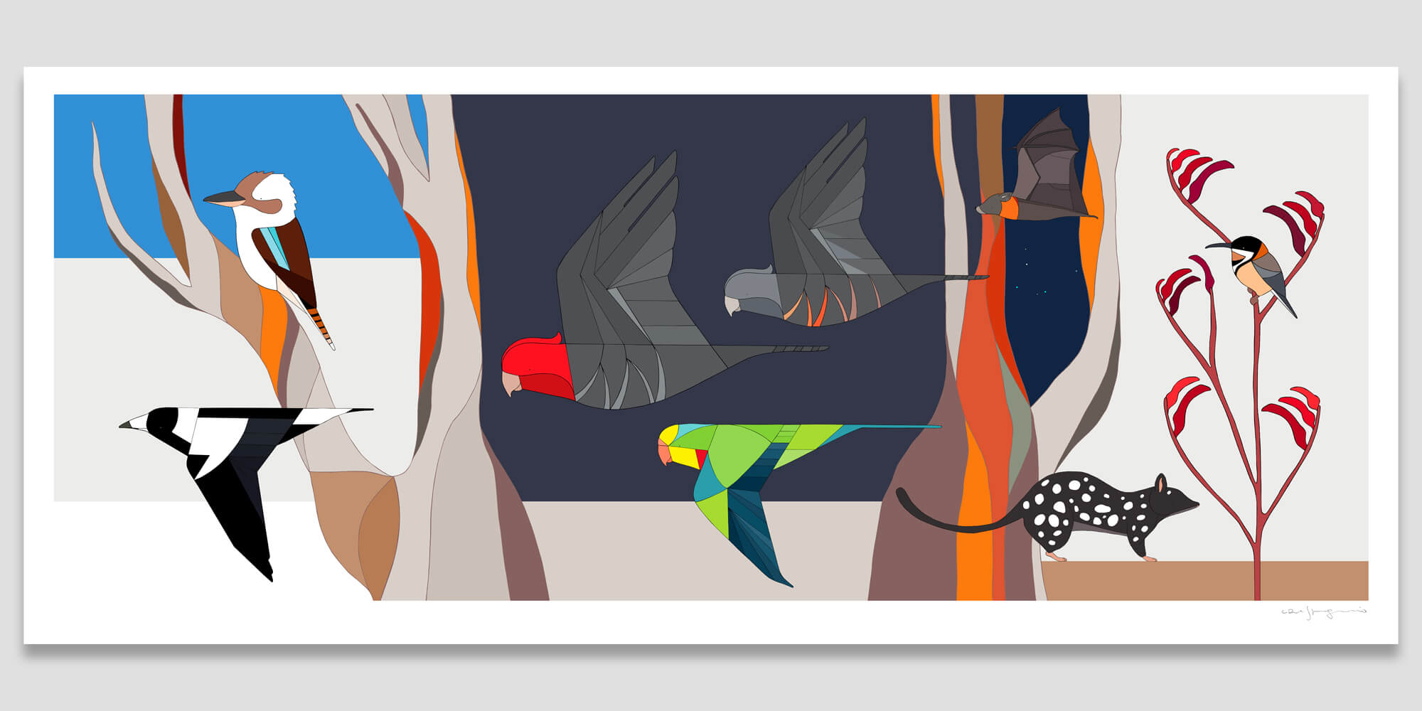 Featuring: Australian Magpie, Laughing Kookaburra, Gang-gang Cockatoos, Superb Parrot, Grey-headed Flying Fox, Eastern Quoll and Eastern Spinebill.